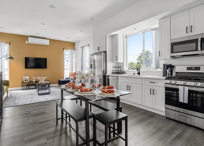 A propriedade está situada no bairro South Los Angeles em Los Angeles, a uma distância de 2.6 km do centro de educação, como a Universidade do Sul da Califórnia. A pousada está situada a 30 minutos a pé dos locais culturais como Museu de História Natural do Condado de Los Angeles. Localizada a uma distância de 2.5 km do Centro de Ciência da Califórnia, a pousada Spacious 4Br, 4.5Ba Private Retreat Near Lax And Dtla também está a uma distância aproximada de 7 km dos locais de entretenimento como a Sala de Concertos Walt Disney.